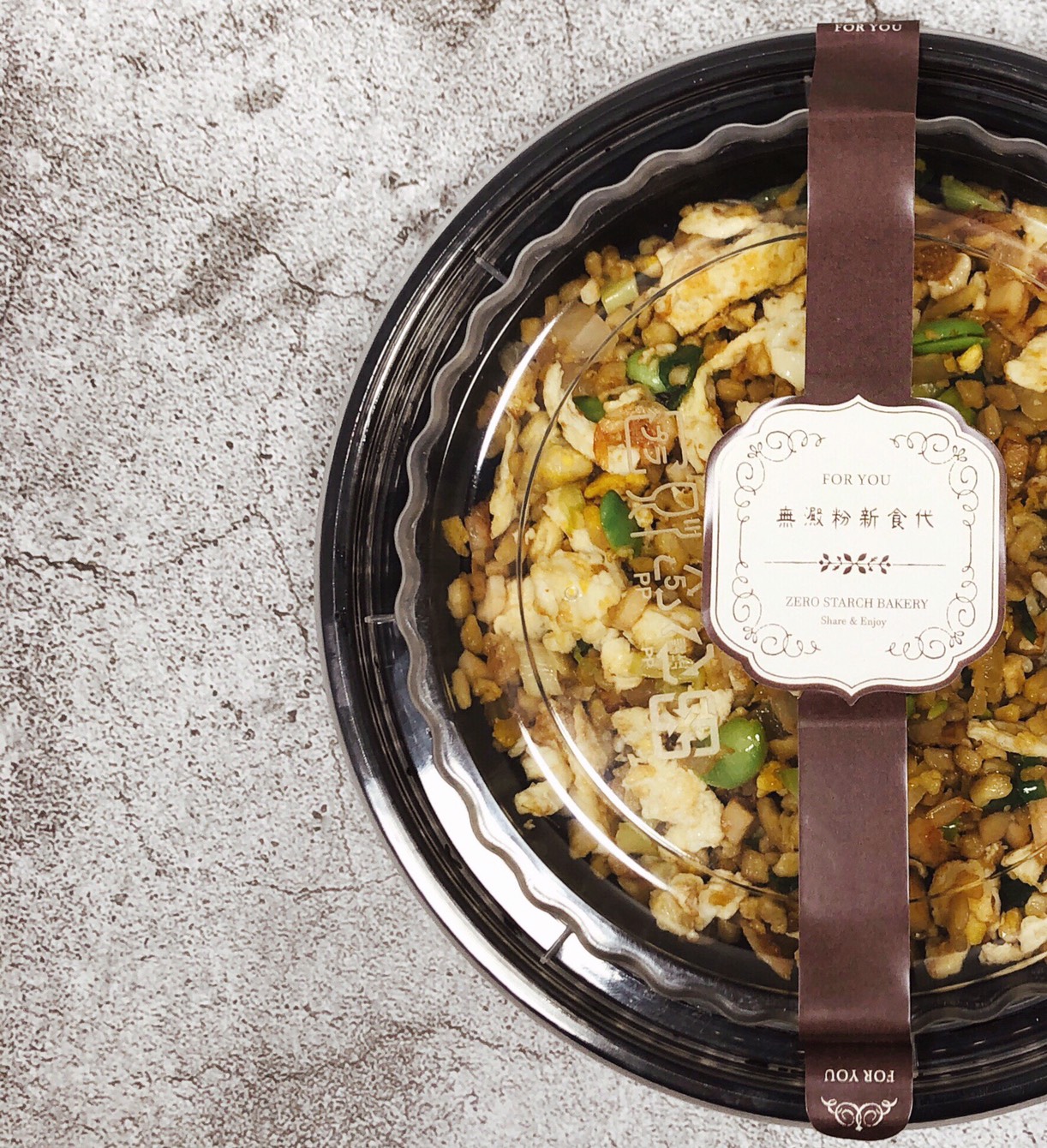 原料為創新之本。繼「W澱粉麵粉」後又一創新;用「W澱粉米麵粉」為主原料,佐以日曬櫻花蝦加上清甜的洋蔥和高纖菇類、豆類,成功研製「葷_酮享炒飯」;營養滿滿又好吃。烹調簡單,輕鬆上桌,粒粒香鬆Q彈,與坊間炒飯相近;限醣不限飯;無化學添加,食在安心。