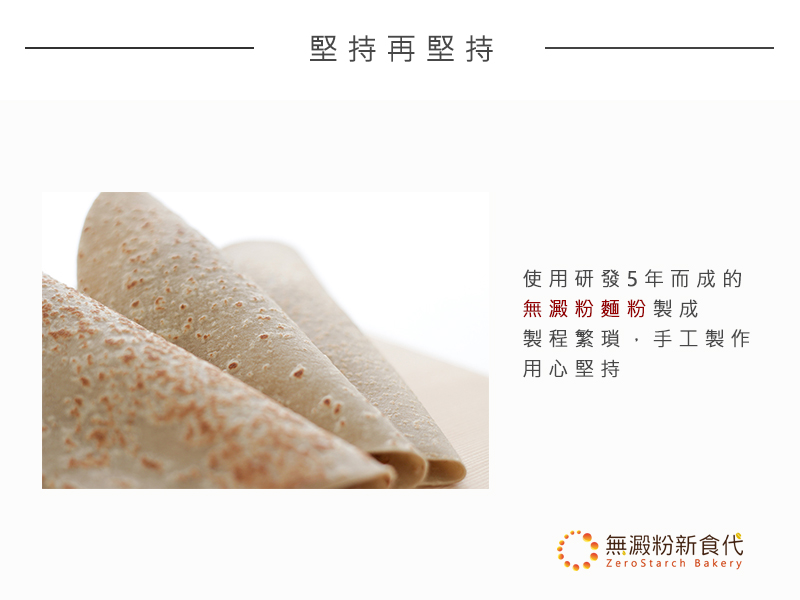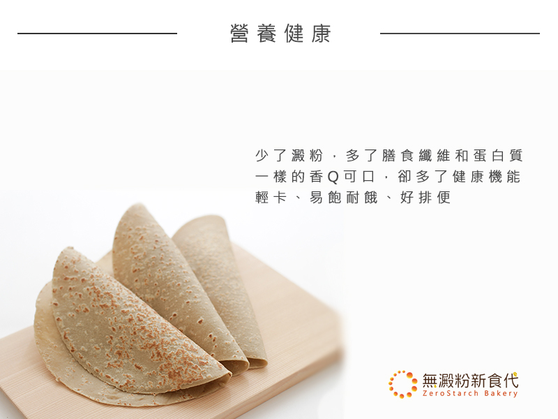 以「W澱粉麵粉」為主原料的無澱粉餅皮,符合限醣。輕食的飲食需求,葷素皆可,老少咸宜,全家人都愛。